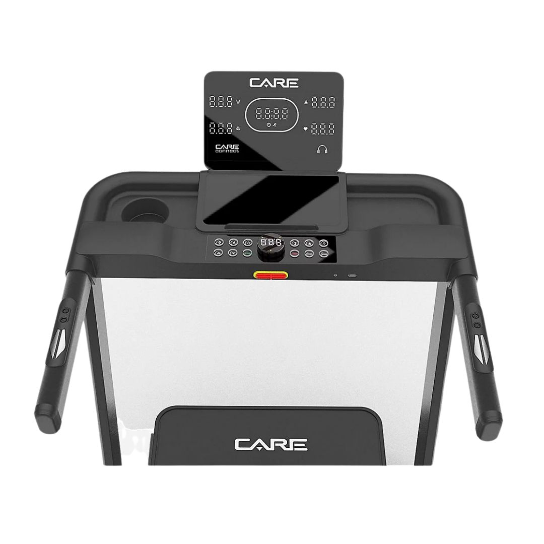 Le tapis Care Run-18 est pliable, facile à ranger après chaque séance. Ses roulettes de transport facilitent le déplacement. De plus, le tapis intègre un support tablette et la connectivité Bluetooth, vous permettant de suivre vos parcours virtuels ou vos programmes d’entraînement en ligne.